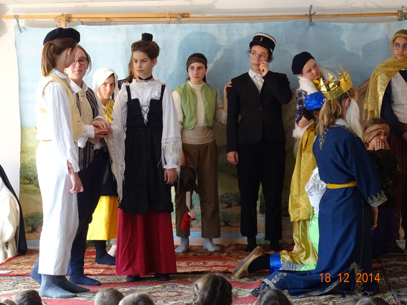 A leur tour, les élèves de 3e avec quelques 4e,  5e et les pensionnaires du primaire, nous présentent « la Pastorale des santons de Provence ». Merci aux metteurs  en scène,  3 “anciennes” Mères de Draguignan, M. Pia, M. Sixtine  et M. Elisabeth de la Trinité. Bravo à toutes les actrices qui jouent avec brio et avec l’accent !
